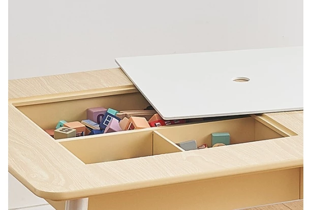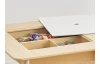 - odnímateľné horné veko stola (vnútorný úložný priestor s 3 priehradkami, rozmery priehradok 18×8×15 cm, 18×8×15 cm, 37×8×20 cm)