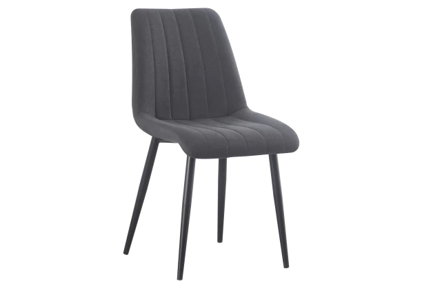Jedálenská stolička na čiernych kovových nohách je stabilná a dokonale sa hodí do moderného priestoru jedálne. Príjemný tvar operadla zaisťuje veľmi pohodlné sedenie a oporu. Stolička je očalúnená jemne štruktúrovanou látkou vo farbe antracitová šedá. Táto stolička sa skvele hodí napríklad k jedálenskému stolu na kovovej podnoži