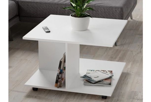 Konferenčný stolík v bielej farbe sa univerzálne hodí do každej obývačky. Tento stolík v štvorcovom tvare má zaujímavú konštrukciu na kolieskach a dá sa tak ľahko presunúť.