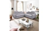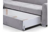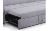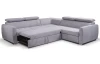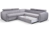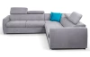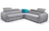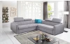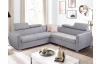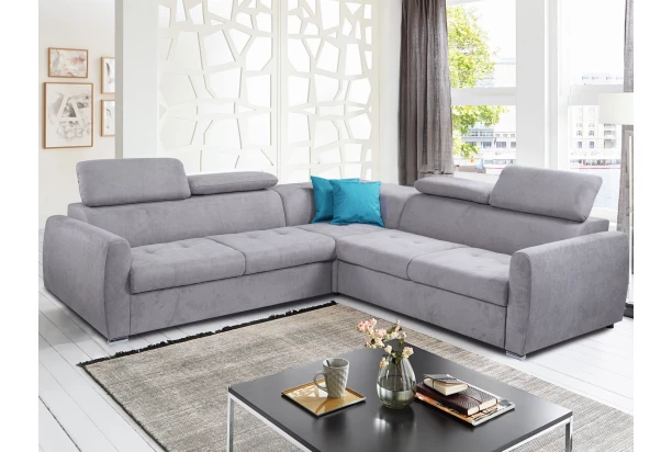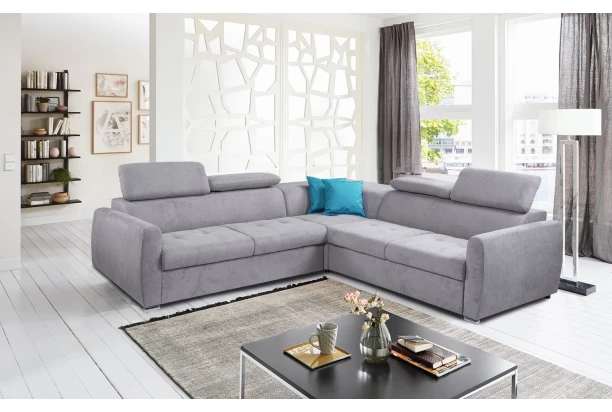 Pohodlná rohová sedacia súprava podľa aktuálnych trendov má príjemne mäkké vypolstrovanie a je vybavená polohovateľnými opierkami hlavy, vďaka ktorým si ľahko prispôsobíte sedenie podľa vlastnej potreby. Sedačka má obe strany rovnako široké a tak sa dobre hodí do rohového priestoru obývačky. Je očalúnená jemne štruktúrovanou látkou vo farbe svetlo šedá a doplnená prešivom. Pod pravým sedákom nájdete výsuvnú úložnú zásuvku na uschovanie deky alebo vecí sezónnej potreby. Vaša návšteva ocení aj funkciu rozkladu na lôžko na príležitostné spanie, rozkladacie lôžko môžete využiť aj vy cez deň počas odpočinku. Táto rohová sedačka je tak pohodlná a zároveň aj praktická.