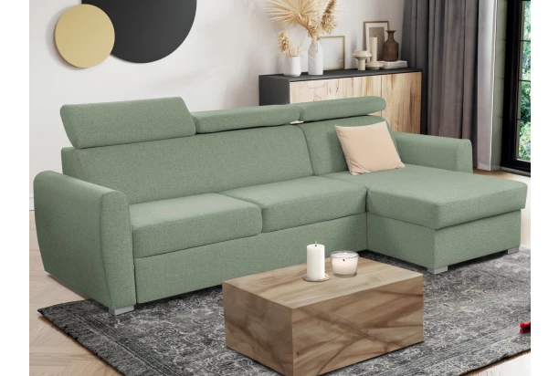 Pohodlná rohová sedacia súprava sa rozmerovo hodí aj do malého priestoru, kde ponúkne pohodlne mäkké sedenie s polohovateľnými opierkami hlavy. Sedačka je očalúnená odolnou látkou vo farbe svetlo šedá a je možné univerzálne zmontovať aké pravý alebo ľavý roh. Pod otomanom nájdete praktický úložný priestor. Funkciu rozkladu na príležitostné spanie využijete pri odpočinku alebo napríklad vaša víkendová návšteva.