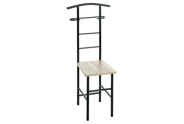Obľúbený nemý sluha so sedákom poslúži aj ako praktická príležitostná stolička, ktorú môžete využiť v spálni, šatni alebo napríklad v predsieni pre pohodlnejšie obúvanie. Na opornú konštrukciu môžete zavesiť akékoľvek ošatenie. V prevedení čierny kov/dub san remo.
