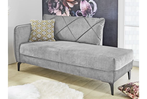 Leňoška alebo tiež pohovka s pohodlným vypolstrovaním a oporným vankúšom sa hodí do každej obývačky. Táto relaxačná pohovka je očalúnená kvalitnou velúrovou látkou vo farbe šedá a doplnená vzorovaným vankúšikom. Čierne kovové nôžky pôsobia v interiéri vzdušne a uľahčia Vám údržbu podlahy. Bočnú podrúčku je možné univerzálne zmontovať na pravú alebo ľavú stranu.