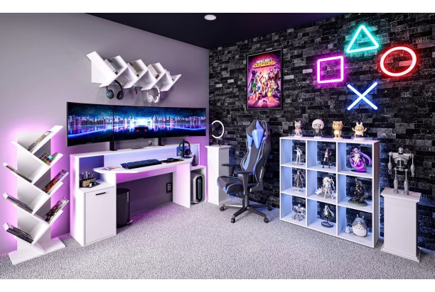 Priestranný biely písací stôl má zaoblenú písaciu plochu a po stranách odkladacie priehradky s úložným priestorom. Stôl navyše obsahuje pevný zadný nadstavec, kam môžete umiestniť monitor, knižky, šanóny s dokumentmi alebo napríklad písacie potreby – budete tak mať vždy všetko po ruke.
