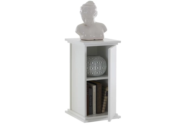 Štýlová skrinka s výškou 58 cm má zaujímavo riešenú konštrukciu, ktorá svojou optikou pripomína stĺp. Vnútorný priestor poslúži na univerzálne ukladanie vecí a na hornú plochu môžete umiestniť lampičku, sochu, kvetinu alebo akékoľvek dekorácie. Tento stĺp v bielej farbe vyzerá v interiéri veľmi zaujímavo a zároveň prakticky poslúži.
