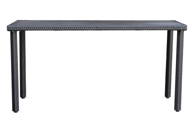 Záhradný stôl obdľžnikového tvaru o veľkosti 150×90 cm z radu Alford – záhradný nábytok z obľúbenej kombinácie kovu, imitácie ratanu a drevených dosiek sa hodí takmer na akúkoľvek záhradu, terasu, balkón či dvor. Odolná imitácia ratanu a drevených dosiek v čiernom prevedení pôsobí veľmi elegantne – nábytok tak môžete využiť ako vonku na záhrade, tak aj vo vnútri bytu, napríklad aj v priestore zimnej záhrady.