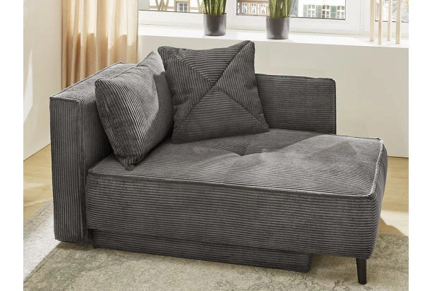 Táto malá pohovka vytvorí útulné miesto pre domácu pohodu v každom byte. Leňoška je očalúnená mäkkou štruktúrovanou látkou vo farbe tmavo šedá a doplnená opornými vankúšmi. Oceníte jej úložný priestor aj praktickú rozkladaciu funkciu na príležitostné spanie alebo relaxovanie. Jednoduchým vysunutím sedadla do bočnej strany vznikne behom chvíľky všestranne využiteľné lôžko. Pohovku je možné univerzálne zmontovať s bočnou podrúčkou umiestnenou na pravú alebo ľavú stranu podľa dispozície vášho bytu.
