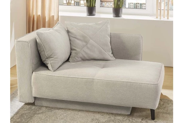 Táto malá pohovka vytvorí útulné miesto pre domácu pohodu v každom byte. Leňoška je očalúnená mäkkou štruktúrovanou látkou v odtieni šedo-béžová a doplnená opornými vankúšmi. Oceníte jej úložný priestor aj praktickú rozkladaciu funkciu na príležitostné spanie alebo relaxovanie. Jednoduchým vysunutím sedadla do bočnej strany vznikne behom chvíľky všestranne využiteľné lôžko. Pohovku je možné univerzálne zmontovať s bočnou podrúčkou umiestnenou na pravú alebo ľavú stranu podľa dispozície vášho bytu.