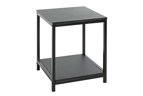 Odkladací stolík o veľkosti 40×40 cm v kombinácii čierneho kovu a čiernych plôch poslúži na odkladanie časopisov, knižiek, dekorácií alebo na umiestnenie lampičky alebo kvetov.
