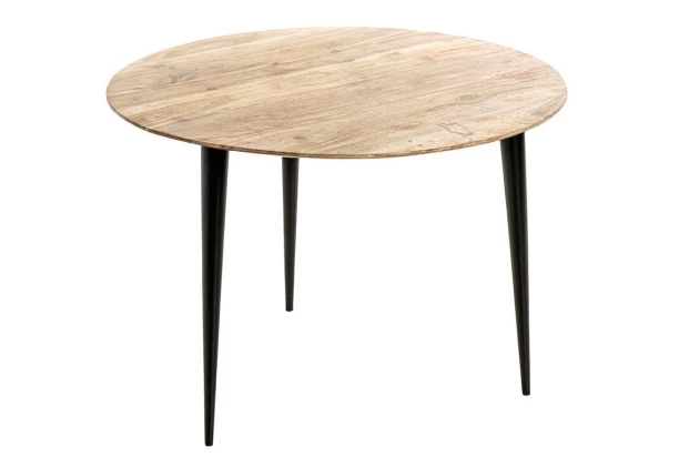 Okrúhly konferenčný stolík s priemerom 65 cm je vyrobený z masívneho dreva akácie, ktorý vnáša do priestoru obývačky kúsok prírody. Stabilitu stolíka dodávajú čierne kovové nohy v kónickom tvare.