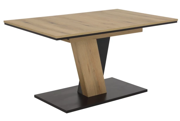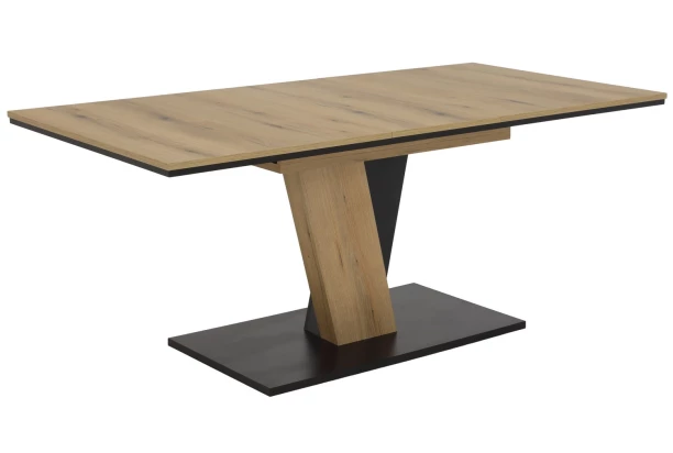 Praktický jedálenský stôl o veľkosti 140×90 cm je vybavený rozkladacou funkciou, vďaka ktorej sa plocha stola rozšíri na 180 cm. Stôl má moderný dizajn so zdvojenou podnožou, ktorá zaujme a zároveň dodáva stolu potrebnú stabilitu. Tento jedálenský stôl je vyrobený v kombinácii dub evoke/čierna.
