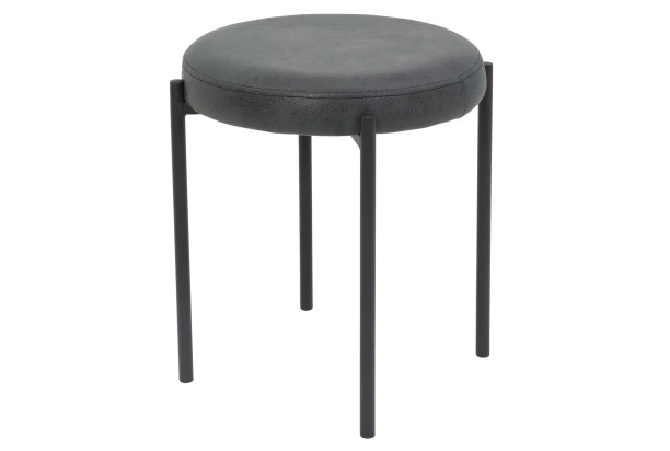 Moderná stolička na čiernej kovovej podnoži má polstrovaný sedák očalúnený látkou vo vintage optike brúsenej kože vo farbe antracitová. Táto stolička poslúži kdekoľvek v modernom interiéri aj ako doplnkový taburet na sedenie.