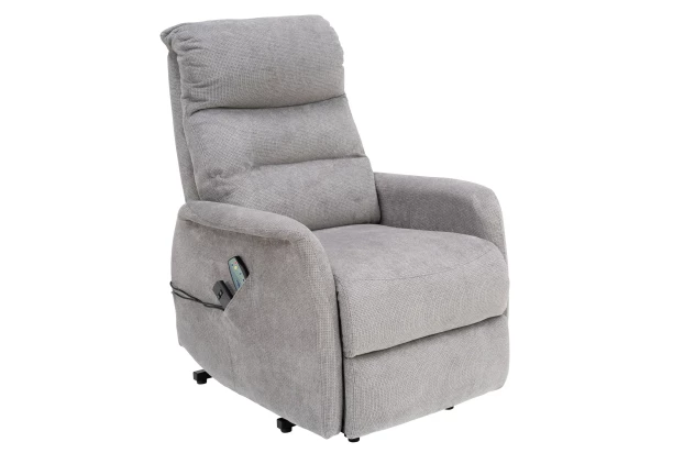 Komfortne mäkkučké kreslo má funkciu polohovania s motorovým pohonom a zároveň masážnu funkciu. Vďaka ergonomickému tvaru nájde svoje miesto aj v menšom priestore. Pomocou ovládača si nastavíte polohu podľa aktuálnej potreby – až do polohy relaxačného lehátka, či už chcete sledovať televíziu, čítať si alebo len tak odpočívať. Staršie osoby ocenia aj funkciu na podporu vstávania, kedy sa sedák ľahko naklopí tak, aby bolo vstávanie z kresla jednoduchšie. Pomocou druhého ovládača môžete využívať rôzne stupne intenzity masáže alebo funkciu nahrievania. Kreslo je očalúnené látkou vo farbe svetlo šedá.