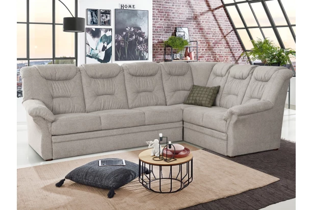 Rohová sedacia súprava Nelson, svetlo šedá látka, pravý roh, s rozkladom