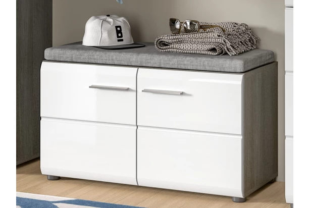Predsieňová lavica na topánky Salsa, šedý dub/biela lesk