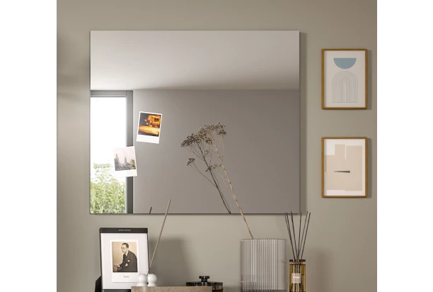 Nástenné zrkadlo z programu Salsa – obdĺžne zrkadlo o veľkosti 80×70 cm má bočné strany v dekore šedý dymový dub a pasuje do akejkoľvek miestnosti.
