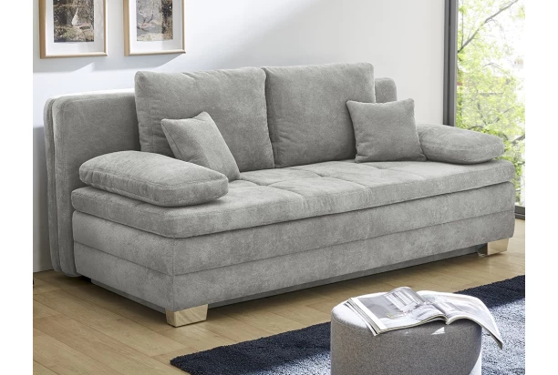 Rozkladacia pohovka s kvalitnou polyuretánovou penou v sedáku a operadle ponúka veľmi príjemný komfort sedenia aj ležania. Túto pohovku je možné využiť aj na trvalé spanie. Očalúnená látkou vo farbe svetlo šedá. Integrovaný úložný priestor pod sedákom prakticky poslúži na odkladanie lôžkovín alebo napríklad sezónnych vecí.