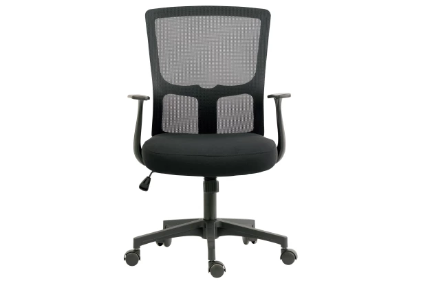 Kancelárske kreslo z kombinácie čiernej látky a priedušnej sieťoviny sa hodí do každej miestnosti. Táto stolička s podrúčkami ponúka klasickú funkciu výškového nastavenia sedu aj hojdací mechanizmus s aretáciou v základnej polohe.