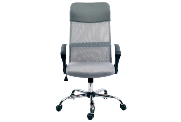 Jednoducho moderné kancelárske kreslo s bočnými podrúčkami má sedák potiahnutý šedou látkou so sieťoviny, ktorá je príjemne priedušná. Vysoké operadlo dopĺňa šedá ekokoža. Túto stoličku je možné ľahko výškovo nastavovať a okrem pevnej pozície operadla ponúka navyše hojdaciu funkciu.