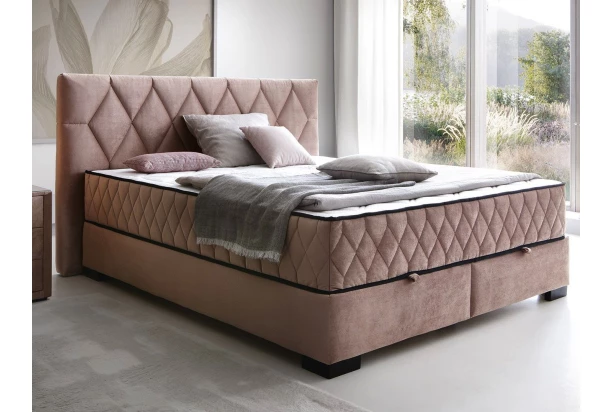 Krásna manželská posteľ o veľkosti lôžka 160×200 cm zaujme štýlovým prešivom a v priestore spálne pôsobí veľmi luxusne. Posteľ je očalúnená odolnou látkou v optike lesklého zamatu v odtieni tmavo ružová. O pohodlie spánku sa postarajú kvalitné vysoké matrace s taštičkovým jadrom, ktoré zaistia optimálny komfort počas spania. Vďaka vyššej polohe lôžka je tak vstávanie z postele jednoduchšie. Praktický úložný priestor v spodnej časti postele je ľahko prístupný z prednej strany postele a poslúži napríklad na uschovanie lôžkovín alebo sezónnych vecí.