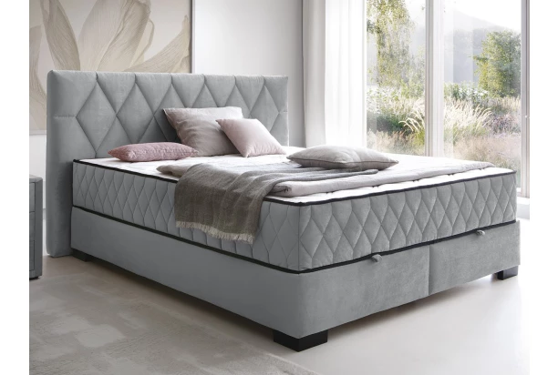 Krásna manželská posteľ s veľkosťou lôžka 160×200 cm zaujme štýlovým prešivom av priestore spálne pôsobí veľmi luxusne. Posteľ je očalúnená odolnou látkou v optike lesklého zamatu v odtieni svetlo šedá. O pohodlie spánku sa postarajú kvalitné vysoké matrace s taštičkovým jadrom, ktoré zaistia optimálny komfort počas spania. Vďaka vyššej polohe lôžka je tak vstávanie z postele jednoduchšie. Praktický úložný priestor v spodnej časti postele je ľahko prístupný z prednej strany postele a poslúži napríklad na uschovanie lôžkovín alebo sezónnych vecí.