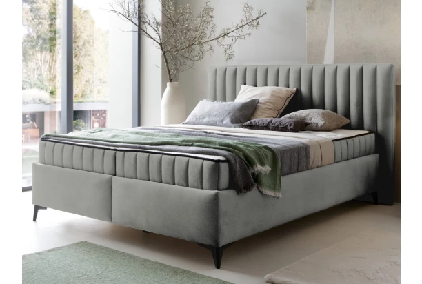 Trendy manželská posteľ o veľkosti lôžka 160×200 cm má štýlové prešitie poťahu vo vertikálnom smere a skvele sa hodí do modernej spálne. Posteľ je očalúnená zamatovo hebkou látkou v odtieni svetlo šedá, ktorá je zároveň aj veľmi odolná. Toto dvojlôžko obsahuje kvalitný vysoký matrac s taštičkovým jadrom a studenou penou, ktoré zaistia optimálny komfort počas spania. Vďaka vyššej polohe lôžka sa vám bude z postele lepšie vstávať. V spodnej časti postele nájdete praktické úložné priestory, ku ktorým sa ľahko dostanete z bočných strán. Do úložných priestorov môžete ukladať napríklad lôžkoviny, deky alebo niektoré sezónne veci. Posteľ je na nôžkach, teda môžete využívať počas upratovania aj robotický vysávač, čo je veľmi praktické.