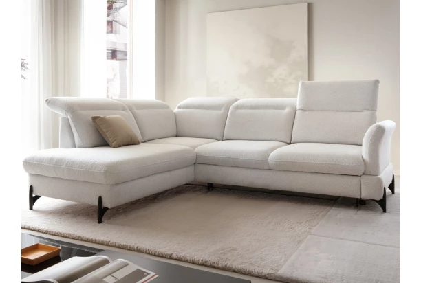 Krásna rohová sedacia súprava v modernom dizajne zaujme na pohľad a prekvapí svojim pohodlím. Komfort sedenia navyše dopĺňajú chrbtové opierky s možnosťou polohovania podľa Vašej aktuálnej potreby. U tejto luxusnej sedačky oceníte odolnú vnútornú výplň zo studenej peny aj celkovo kvalitné spracovanie. Moderný štýl sedačky dotvára zaujímavo tvarované nohy z čierno lakovaného kovu. Sedacia súprava s otomanom tvorí ľavý roh – pod otomanom nájdete aj praktický úložný priestor. Veľkou výhodou je rozkladacia funkcia na lôžko, ktoré môžete využiť aj na trvalé spanie. Táto sedačka je očalúnená jemne štruktúrovanou látkou vo farbe svetlo šedá, ktorá je nielen príjemná na dotyk, ale zároveň aj Pet friendly – to znamená, že látka je navrhnutá špeciálne tak, aby čelila nielen bežnému každodennému používaniu, ale aj navyše aj výzvam, ktoré predstavujú domáci miláčikovia – táto látka sa teda vyznačuje zvýšenou odolnosťou voči povrchovému znečisteniu, dlhšou životnosťou a zvýšenou odolnosťou proti pazúrikom aj chĺpkom Vašich domácich maznáčikov.