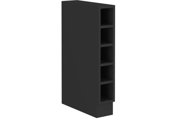 Dolný kuchynský regál so šírkou 15 cm z programu Karmen v jednoduchom, funkčnom a zároveň modernom štýle. Vyrobený v čiernej matnej farbe. Jednotlivé elementy z kuchynského programu Arona môžete medzi sebou rôzne kombinovať a zostaviť si tak kuchyňu podľa vašich predstáv a priestorových možností.