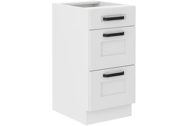 Dolná zásuvková kuchynská skrinka so šírkou 40 cm z programu Luna v jednoduchom, funkčnom a zároveň modernom štýle, v matne bielom prevedení s profilovanými povrchmi. Jednotlivé elementy z kuchynského programu Luna môžete medzi sebou rôzne kombinovať a zostaviť si tak kuchyňu podľa vašich predstáv a priestorových možností.