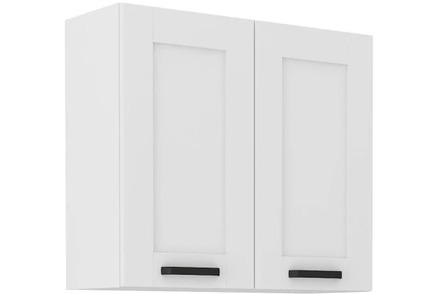 Horná kuchynská skrinka so šírkou 80 cm z programu Luna v jednoduchom, funkčnom a zároveň modernom štýle, v matne bielom prevedení s profilovaným povrchom. Jednotlivé elementy z kuchynského programu Luna môžete medzi sebou rôzne kombinovať a zostaviť si tak kuchyňu podľa Vašich predstáv a priestorových možností.