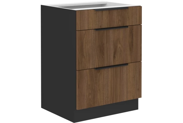 Dolná zásuvková kuchynská skrinka Monza, 60 cm, orech/čierna
