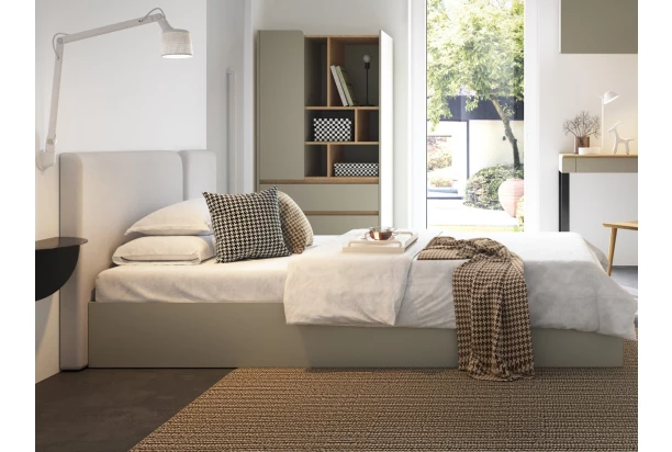 Posteľ z kolekcie Lucky – nábytok v nadčasovom minimalistickom štýle pasuje univerzálne do detskej izby, izby tínedžerov aj domácej pracovne. Posteľ s veľkosťou lôžka 120×200 cm obsahuje rošt aj dolný úložný priestor, ktorý je ľahko prístupný po vyklopení roštu z prednej strany postele.