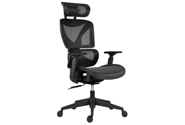 Moderné kancelárske kreslo s mnohými funkciami pre váš každodenný komfort pri práci. Očalúnené látkou vo farbe čierna, ktorá je príjemne priedušná a zvyšuje tak komfort a hygienu aj pri dlhom sedení pri počítači. Stolička je vybavená nastaviteľnou výškou sedu, nastaviteľnými podrúčkami, nastaviteľným podhlavníkom aj hojdacou funkciou s možnosťou aretácie dvoch polôh. Táto pracovná stolička má navyše veľmi príjemný anatomický tvar s bedrovou oporou.