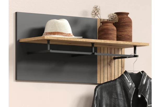 Nástenný šatníkový panel Esteban, antracit/dub evoke