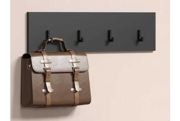 Nástenný vešiak na šaty z programu Esteban – nábytok vo farbe antracitovo šedá sa hodí do každej predsiene či šatne. Vešiak obsahuje 4 háčiky na šaty alebo tašky.