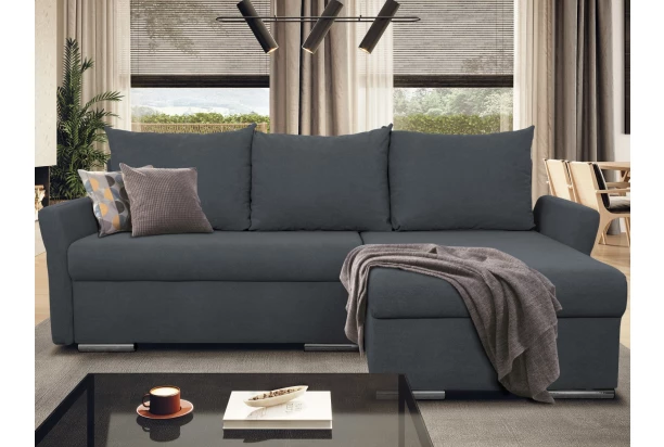 Malá rohová sedačka poskytne príjemné sedenie aj v priestore malej obývačky. Očalúnená jemne štruktúrovanou látkou vo farbe tmavo šedá, ktorá sa vyznačuje zvýšenou odolnosťou. Rohová sedacia súprava je možné univerzálne zmontovať ako pravý alebo ľavý roh – bude tak pasovať takmer do akéhokoľvek priestoru. Pod otomanom sedačky nájdete úložný priestor pre univerzálne ukladanie vecí a využijete aj rozkladaciu funkciu na príležitostné spanie alebo pohodovú domácu relaxáciu.