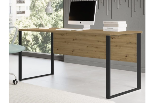 Obdĺžny písací stôl v modernom štýle o veľkosti 170×73 cm je vyrobený v drevodekore dub artisan a má širokú podnož z čierneho kovu, ktorá mu dodáva dobrú stabilitu. Tento stôl sa univerzálne hodí do pracovne aj detskej izby. Poslúži dobre ako pri písaní, tak pri práci na počítači alebo pri vašich obľúbených domácich hobby.