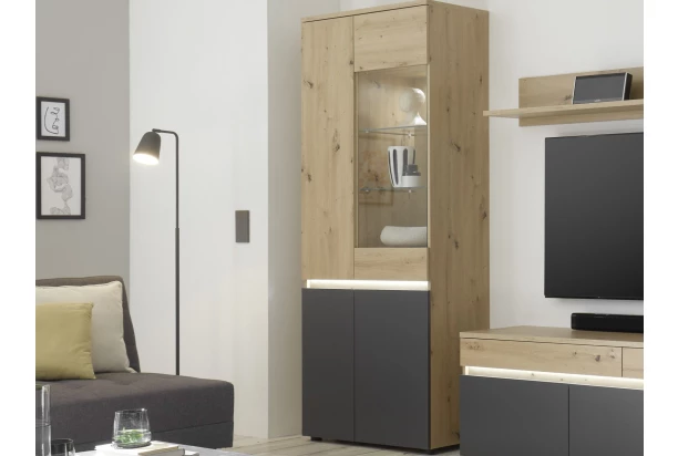 Vysoká vitrína Lille, dub artisan/antracit, s osvetlením