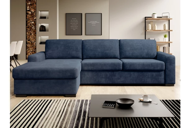 Komfortná rohová sedačka je vybavená kvalitným rozkladacím mechanizmom s matracom s veľkosťou 160×191 cm pre trvalé spanie, kde nájde pohodlie jedna až dve osoby. Na útulnosti pridáva aj mäkučká poťahová látka s prúžkovanou štruktúrou v odtieni kráľovská modrá. Sedacia súprava s rozkladom je ideálna aj do menších bytov, kde môže poslúžiť ako plnohodnotné lôžko. Vďaka ľahkému rozloženiu sa sedačka premení na posteľ v priebehu pár sekúnd.
