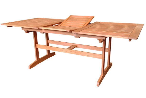 Rozkladací záhradný stôl o rozmere 150–200×90 cm z tvrdých tropických driev vytvorí útulné prostredie na záhrade alebo dvore. Vyznačuje sa vysokou odolnosťou proti poveternostným vplyvom a dlhou životnosťou.