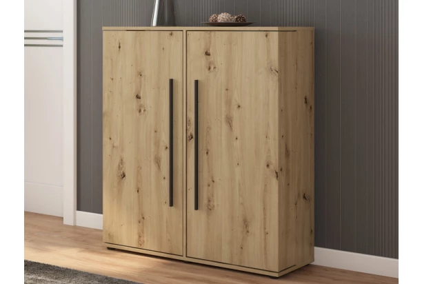 Botník s prakticky riešenou konštrukciou v dekore dub artisan má šírku 100 cm a pojme až 36 párov topánok. Vnútorný priestor má dvojité množstvo priehradok na topánky. Tento veľmi praktický botník ocenia všetci, kde potrebujú uschovať väčšie množstvo obuvi. Po otvorení tohto dvojdverového botníku zistíte, že jeho vnútorný priestor obsahuje dvojité množstvo priehradok ako iné bežné botníky. Vnútorný priestor je zároveň veľmi prehľadný, môžete si tak ľahko usporiadať topánky napríklad podľa využitia, farby, štýlu alebo vlastných preferencií. Môžete na seba umiestniť aj dva tieto botníky a získať tak extra objemné priestory na ukladanie obuvi pre celú rodinu.