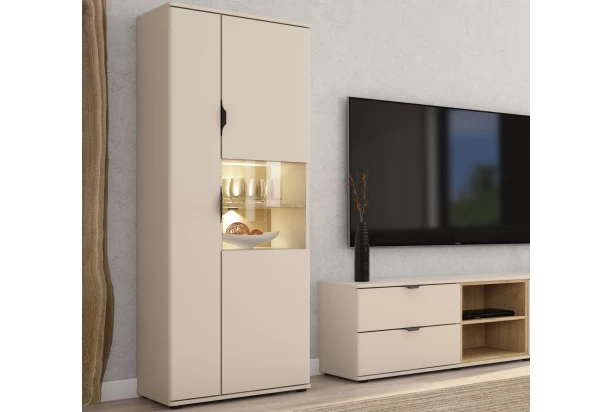 Vysoká skrinka s presklením Avola, béžová kašmír/dub cremona