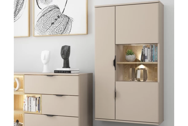 Závesná vitrína Avola, béžová kašmír/dub cremona