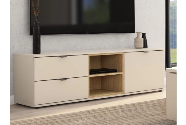 TV skrinka so zásuvkami Avola, 140 cm, béžová kašmír/dub cremona