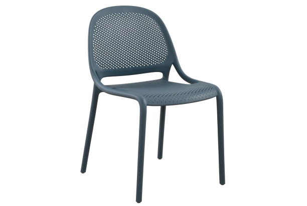 Moderná jedálenská stolička z polypropylénu vo farbe morská modrá je stabilná a odolná – môžete ju využiť ako doma v interiéri, tak v exteriéri Vašej záhrady aj balkóne.