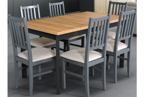 Klasický jedálenský stôl o veľkosti 120×80 cm v dekore dub artisan/čierny má obdĺžny tvar a hodí sa do každej kuchyne a jedálne. Tento stôl má podnož vyrobenú z masívneho bukového dreva, ktorá mu dodáva pevnosť a stabilitu.