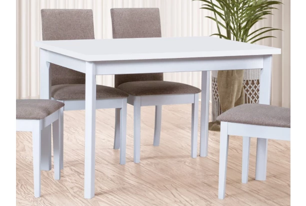 Klasický jedálenský stôl o veľkosti 120×80 cm v dekore bielená borovica/biela má obdĺžnikový tvar a hodí sa do každej kuchyne a jedálne. Tento stôl má podnož vyrobenú z masívneho bukového dreva, ktorá mu dodáva pevnosť a stabilitu.