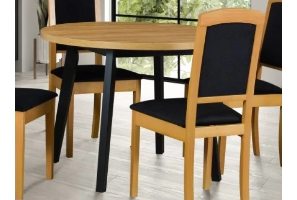 Klasický jedálenský stôl s priemerom 100 cm v dekore dub artisan/čierny má okrúhly tvar a hodí sa do každej kuchyne a jedálne. Tento stôl má podnož vyrobenú z masívneho bukového dreva, ktorá mu dodáva pevnosť a stabilitu.
