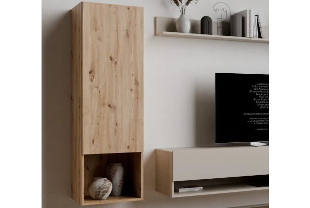 Nástenná skrinka z radu Asko Living – nábytok v modernom minimalistickom štýle je nadčasový a zároveň plní svoj praktický účel. Jednoduché rovné línie sú univerzálne vhodné pre väčšinu moderných domácností a nábytok sa dá ľahko kombinovať so zvyškom zariadenia vášho bytu. Táto nástenná závesná skrinka má šírku 40 cm a je vyrobená v dekore remeselného dubu. Môžete ho skombinovať s ďalšími prvkami a vytvoriť tak kompaktnú obývaciu súpravu alebo ho prípadne použiť samostatne, kdekoľvek vám to vyhovuje.