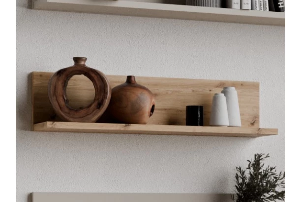 Police na stenu z radu Asko Living – nábytok v modernom minimalistickom štýle je nadčasový a zároveň plní svoj praktický účel. Polica s nástenným panelom má šírku 60 cm a je vyrobená v dekore dub artisan.